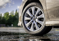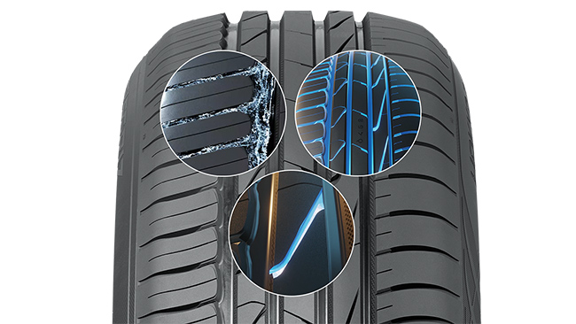Применение сразу нескольких концепций позволило инженерам добиться идеальной управляемости и сцепления с мокрой дорогой. Технология Dry Touch 3.0 – увеличенное количество дренажных канавок, помогает сократить к минимуму риск аквапланирования и улучшить контроль над автомобилем. Канавки уникальной формы Swoop Grooves выполняют функцию «насосов», которые перенаправляют воду от более узких к более широким водоотводам. Технология Coanda разработана специально для выведения из центрального ребра лишней влаги по боковым каналам наружу, что усиливает безопасность движения в сильный дождь.